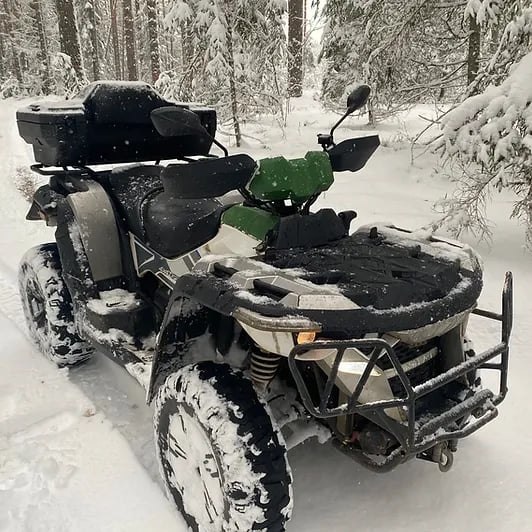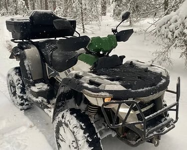 Aizraujošs izbrauciens ar kvadraciklu pa sniegotiem meža ceļiem pusotras stundas garumā. Pieejams no 01. Decembra - 01. Martam